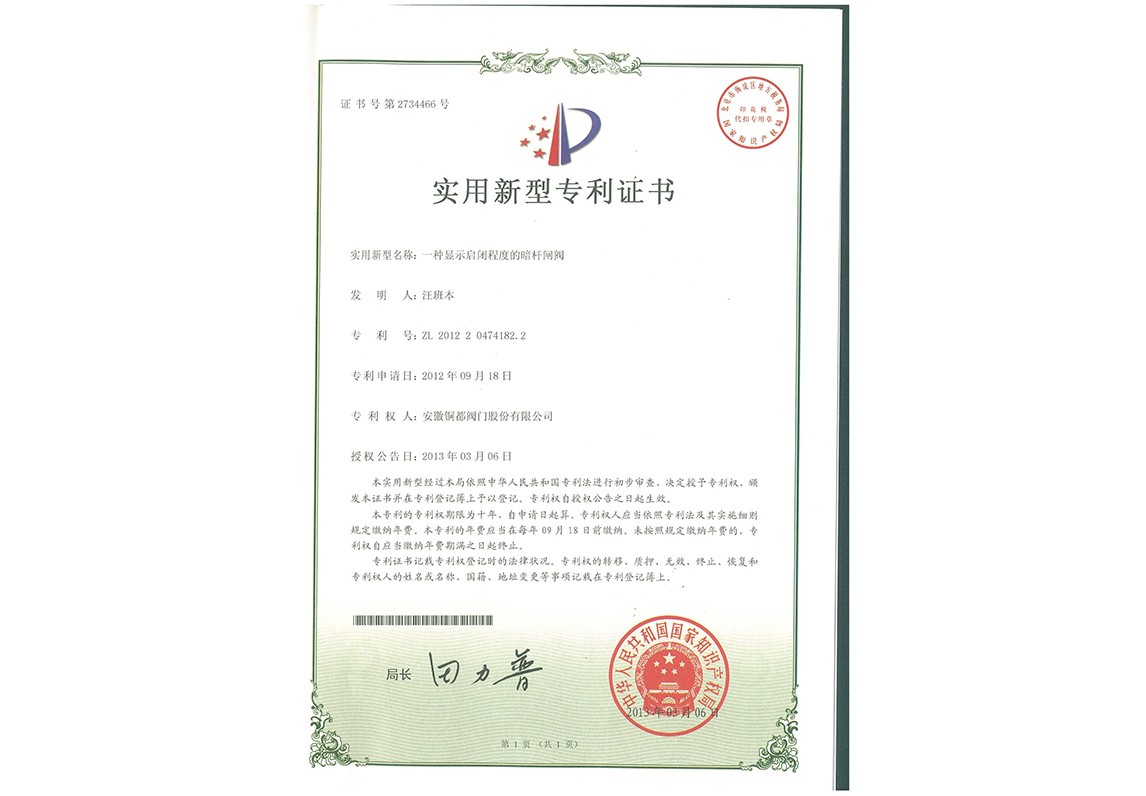 一種顯示啟閉程度的暗桿閘閥