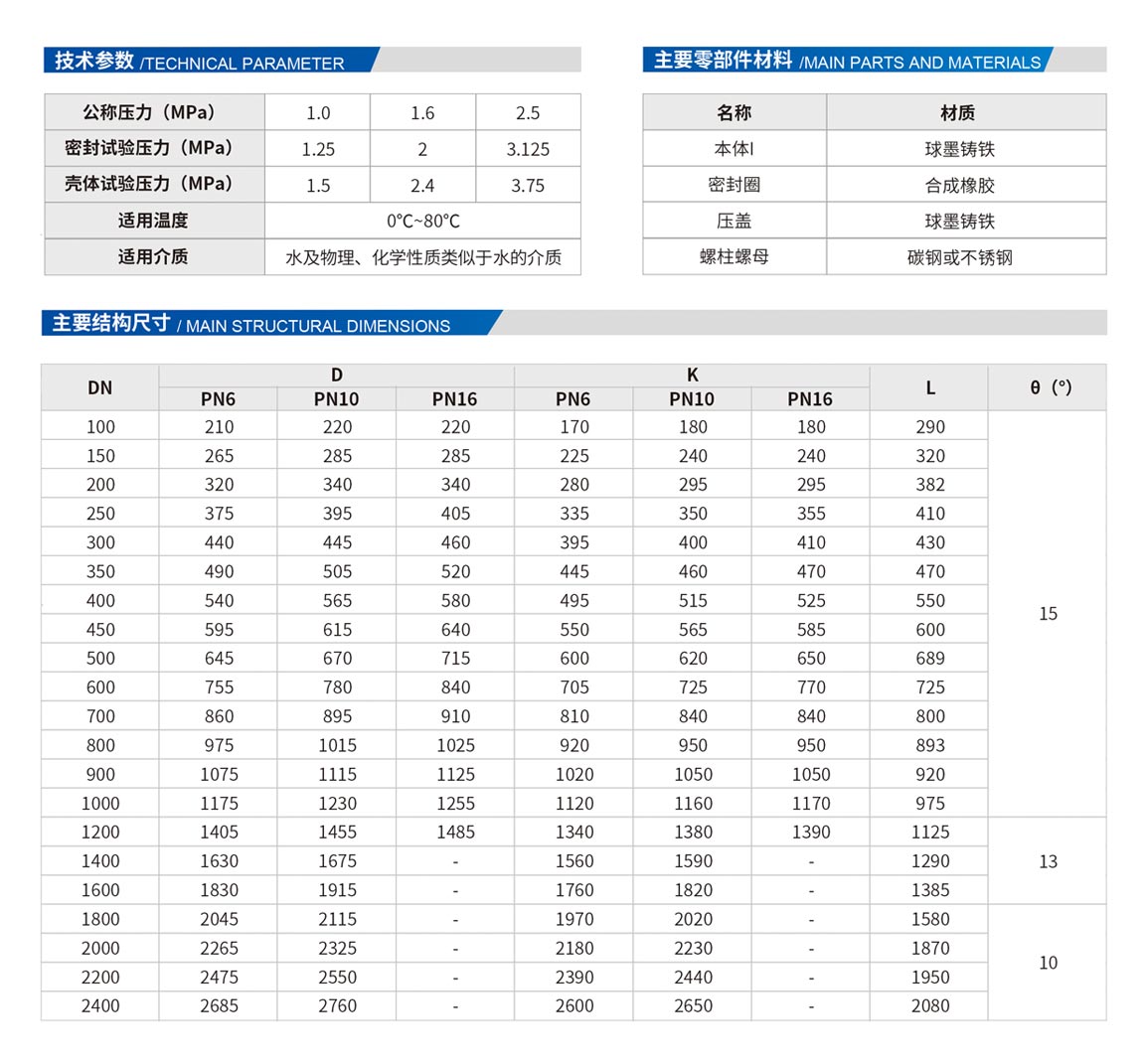 球形補償接頭主要適用于地面沉降大、震動大、地形復雜的管道連接。安裝在管道上后,球體可以以回轉中心在θ角范圍內自由轉動,來補償管道因地基沉降、熱脹冷縮引起的撓曲。具有補償量大,占據空間小,流體阻力小,安裝方便,綜合成本低等優點。