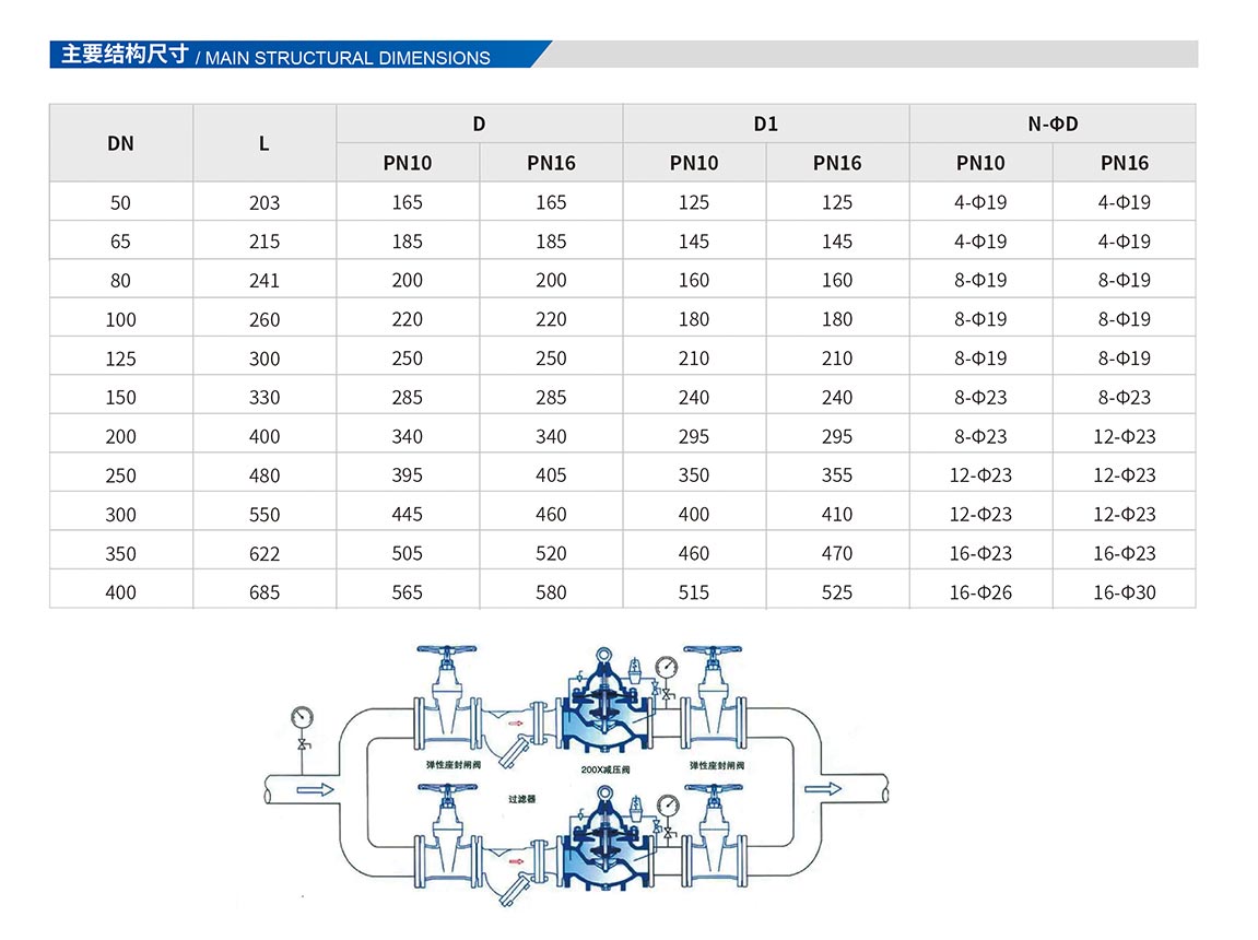 主要控制主閥的固定出口壓力,主閥出口壓力不因進口壓力變化而改變,亦不因主閥出口流量的變化而改變其出口壓力。適用于工業(yè)給水、消防供水及生活用水管網(wǎng)系統(tǒng)。